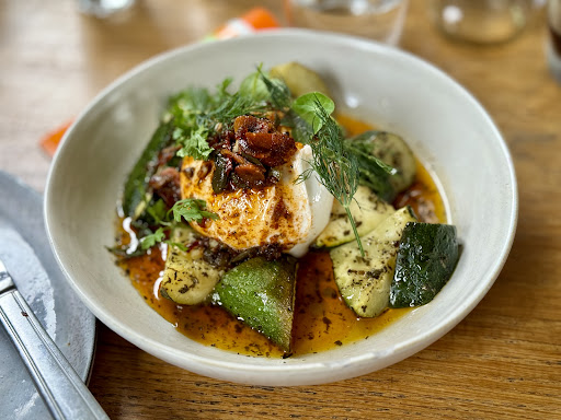 We loved the space, and the restaurant was busy when we arrived on a Saturday evening with a cracking 'buzz' of atmosphere from the many tables occupied. We went 'all-in' with starters and mains, however we had to share a pud as by then the excellent food had rather done for us - it was plentiful. My wife had some superb Cambridge Asparagus which had been made into a fantastic plate with some Leek Ash, Rapeseed emulsion and parmesan (it really was terrific) and my opening round Burrata was excellent too. We followed with some Colne Valley Coal Fired Lamb (outstanding, and the square croquette accompanying it being particularly lamb'y and delicious) and a 60 Day Old Spot which we both agreed was probably the best Pork we'd ever tasted (shaded only by Iberico Presa but it was close!) which was adorned with a fabulous Charcuterie Sauce. The accompanying side of garlic/parsley fries were so good and showed some real care from the kitchen with every delicious fry covered in the advertised parsley and garlic rather than a little puddle dumped on top as you often see when others try to do 'posh' chips elsewhere. Dessert was a very competent lemon tart/marscapone which was a great end to a superb supper.