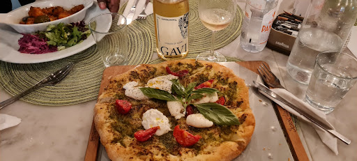 Finally, dinner. This was the best experience yet. I took the neighbours, two of whom are Italian and skeptical having had a bad experience at the Signorelli's in town (where the service was not great, to say the least, according to their time there). I've lived in Italy so high standards are expected! I had the pizza l'Italiano - pesto, burrata and sun-dried tomatoes. It was very good. The base was fluffy, Sicilian style? My Italian friends described it as "house style", and if it is I'll be back for more. Very tasty. The wine was the previously-mentioned Gavi, they had a chilled bottle in the fridge and it was enjoyed. Dessert was gelato. The pistachio isn't too sweet, it has flavour and I'll have this again for sure.