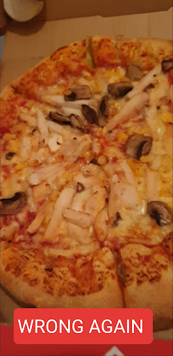 By the time I got home the 1st pizza was stone cold and they'd given me two of the same pizza which was covered in mushrooms (which I'm allergic to) so had to throw it away.