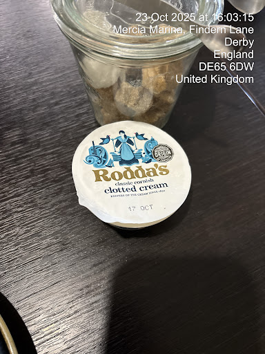 The cakes and drink arrive thank you. Mediocre Mocha. Cold hot chocolates, tea pot was a tea so I would give up if they got that wrong but anyway. The chargeable clotted cream was out of date. My wife goes to swap it, they apologise and give her another. Guess what that’s out of date. They then have the nerve to say, oh we freeze it on delivery so just have it. It’s fine. 😳😳. Where is the label to say it was frozen and when thawed? It looked dry. My wife didn’t have it so a waste. Cakes were ok. Kids had a vanilla sponge each, and one walnut with coffee that was ok. Sizes very inconsistent, one vanilla sponge was was smaller than the other but ok, this happens.