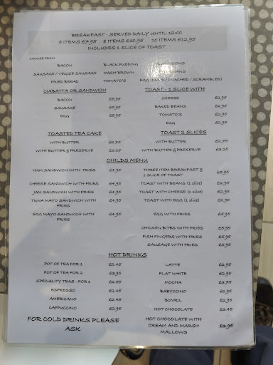 Ā Ā Ā Read moreFive of us popped in for lunch yesterday. Three of us had a panini and two tuna mayo jacket potato. We weren't really happy with the food. Jacket potatoes were microwaved as they didn't look or taste baked and the panini didn't have any flavour. The lady who served us was friendly enough but the lady who bought our food to us struggled to put on a smile. Waste of money and wish we had gone to bees tea rooms just a little further on as they are lovely in there and the food is fantastic quality. I don't usually moan but this was a total...