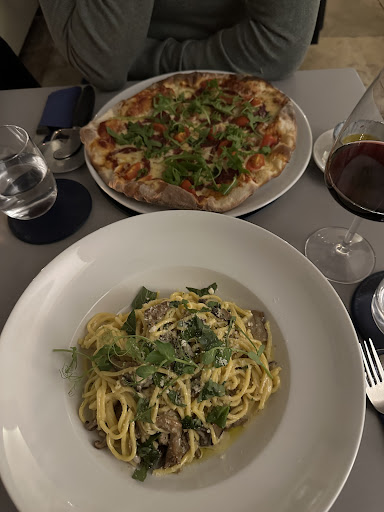 Read moreWe went here without a booking on a work trip and during dinner peak time. Sadly, not many places to eat in this beautiful part of the country. As we walked around, this came up on a side road looking very unassuming. We hesitantly went it as it looked like it lacked atmosphere or winding down. The young lady who greeted us was very lovely and was kind enough to see we looked hungry having worked all day. She said they are fully booked but thinks there’s a table that’s about to be free in 15 minutes. So she sat us down and we realised what you see on the street is the small bar waiting area. Anyway, she took our drink order and I had the Pimms summer cocktail which turned out to be excellent with all the summer fruits. When we started looking at the menu, they were straightforward unfussy with not a lot of choice —- but we appreciate this because it means fresh local produce. I ordered pasta stuffed with crab with some cheese on top. Delicious indeed and my other half had a very tasty freshly baked pizza with a side of garlic bruschetta. This small but confident place is just what you need for a nice and well priced dinner when in town. We ate in a nearby town who’s ubiquitous as it’s hotel partner and we paid more for food that’s frozen and it tasted of 90’s menu. This one was quality through and through.