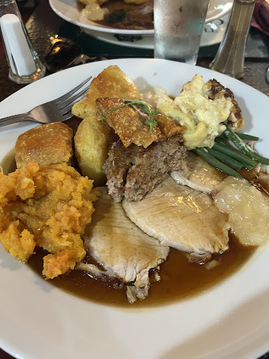 Read moreWent for a well deserved Sunday meal, ended up spoiling ourselves 😊 had the deep fried Brie starter brought out with our Heavenly roast beef dinner. Both were well presented and tasted amazing! One of the most flavoursome meat and vegetable meals we have had in a while. A good size portion too. Then OH decided he would like sticky toffee pudding which looked pretty and tasted just as good , so he said. No sharing allowed 🤣 The pub itself was clean, quirky and old school imo, they have a huge car park, and a fair sized garden. The staff were very friendly and the chef was very good with my allergy as I didn’t die 😂😂😂 So for a starter, 2mains,1pud and 4pints of Pepsi/coke it cost just under £70.