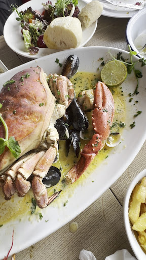 Crabs, both dressed and whole are super fresh and come with decent fries. Mussels from Fowey in Cornwall. Salads are also really good. Local lobster with garlic butter is also fantastic but I often think good crab can beat lobster. Awesome crab sandwich with mayo and lemon.
