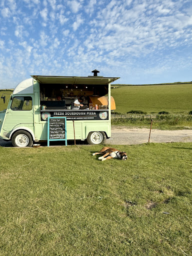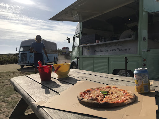 Cute van with a stone pizza oven. A few pizza selection available and a bit small. Location is in the car park of Bantham beach which is one of the nicest and cleanest beaches in the uk. Some sitting available in the car park but no shade and can get windy and dusty best take your pizza...