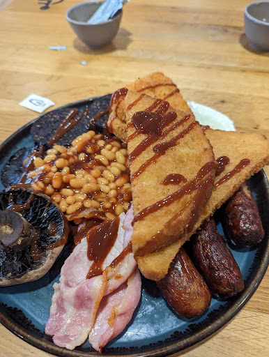 I've eaten here before for a quick, inexpensive meal and today, it was inexpensive but it most certainly wasn't quick. The food quality wasn't bad and I have to say, that for the price, it was ok. Good sized portion for the money. When I arrived, I looked where to sit and a majority of tables hadn't been cleared. I get places have staffing issues but 2 waitress, who were also taking payments at the till, were running the tables too. Another was busy messing about in the back with the 2 kitchen staff. She might have been a KP but should've come out front to clear tables. Once I found my table (at a disabled access table due to many others not being cleaned) I ordered my food on the self service pod. No issues, went through smoothly. These would be great in other establishments. I ordered at 13:11. At 13:41 I still haven't got my meal (bangers and mash!) I enquired and had to wait a further 10 minutes before my food arrived. I'm no grouch and I think it's important people enjoy their work, and having worked in the Hospitality industry and that my wife works for a 5 star cruise company and previously, the Shangri-la hotel group, these kitchen staff spent the whole time messing about and were wasting time rather than preparing customers orders. One of the guys, maybe a supervisor, was slightly better but overall their lack of professionalism contributed to the slowness of the food coming out. There were a decent number of customers but there were still multiple empty tables.