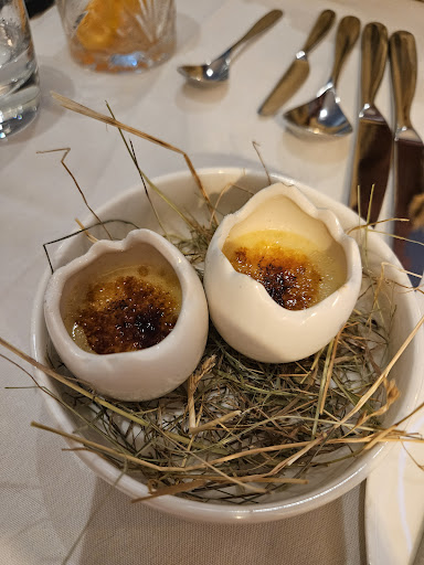 We had the canapés, they were delicious, although the blue cheese crème brûlée was a bit odd.