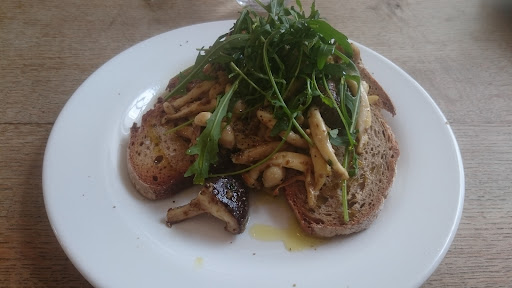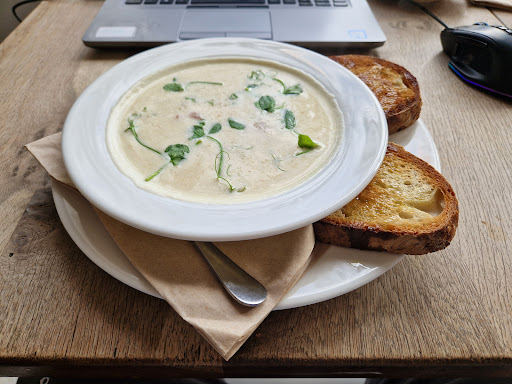 Read moreVERY small place and quite busy when we arrived (on probably the busiest corner in the town of Totnes). Took a while to order and we had to sit outside in the drizzling rain (par for half our days in the Devon area). Fortunately by the time our order was ready, we managed to squeeze into one of the three tables inside. The food and coffee were okay but not very warm. That along with sitting in the rain is mostly why I assign just 3 stars. Only when I visited the upstairs facilities did I notice that there seemed to be a much larger up (another flight! of narrow!) stairs dining area. Would have been nice to have directed to that ... but we were having trouble / pain climbing stairs, so that might not have...