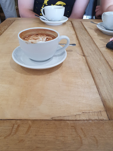 The waitress put the cups down saying what the drinks were and we got a cappuccino and not a Mocha. Then she came back and said no it is a mocha not a cappuccino. It did not taste like a mocha. The drinks were tepid at best and then after we finished it was another wait for the bill.