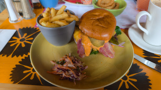 Read moreI was initially hesitant to visit, but my husband and I met a friend there, and am I ever glad I went! The decor was phenomenal. Absolutely unique, and made one feel happy for some reason. The ambiance was perfect, the menu was hilarious, and there were board games and books to take advantage of, The service was absolutely phenomenal. The guy behind the counter was friendly, helpful, funny, and made our eating experience better for his serving us. The food was fantastic! We had some tapas, a chicken and avocado salad (and when I asked to substitute steak for the chicken and pay for the difference, it was done), and a Matador burger, all with drinks and dessert. The drinks were delicious, refreshing, and well thought out, the salad was perfect (though admittedly a bit on the small side for the price), the tapas were wiped-clean in a matter of 30 minutes, and the Matador Burger, though nothing to write home about, was filling and yummy. We did pay extra for the sweet potato fries, and were a bit disappointed by the amount of fries that extra $1.25 will get you, but with drinks and dessert it ended up a blessing in disguise. The sticky toffee sundae was something I wish I could eat every day of my life, and the churros (accompanied by two dipping sauces) were surprisingly good! (Being a Californian I have pretty high expectations of Mexican foods, expectations that Britain has managed to almost thoroughly crush, so these were a pleasant surprise). We look forward to coming back for breakfast and...