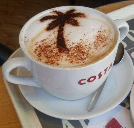 Read moreThis Costa has 3 tables available to sit outside on the pavement.Inside they offer around 20 tables which are in a very spacious setting & all on ground level.During my visit today around 3.15pm I found the store to be surprisingly really quiet & able to have a table seat outside in the sunshine. Inside I noticed the display shelving for cakes,muffins etc,to say sparse would be an understatement as they were virtually empty,which was very disappointing. But I did have a piece of rocky road which had 50% off to accompany my gingerbread latte as the well advertised Tropical Mango Frappe wasn't available. The Barista service when ordering was OK, nothing to shout about ,don't know if its because they'd had a busy day or not but something was amiss, not great interaction from the staff as if its too much trouble. I did enjoy my drink though but the experience could of...