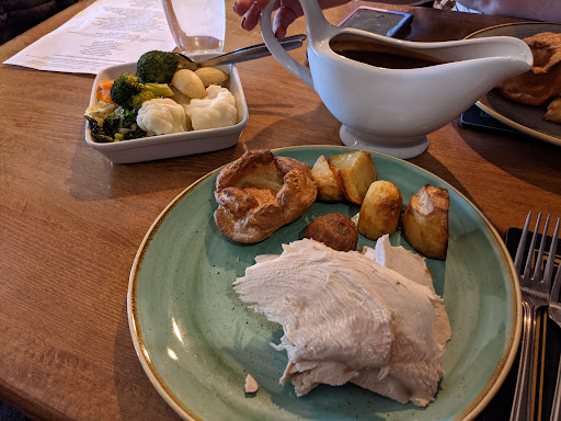 It was a Sunday. We had visited friends nearby and were rather hungary and as we drove home we spotted this pub and decided to give it a go. It was packed and we were told it was fully booked, but after a good look at the reservations the very friendly member of staff found us a table, saying (rather apologetically) we'd only have 1½hours (which was plenty of time). We sat down and another very friendly member of staff took our drinks and food order. The atmosphere and decor was brilliant. I'm Very Big and have a big appetite, so I've become accustomed when eating at other pubs to feeling just as hungary when leaving. Not So Here !! We had all 3 courses and each was really tasty and perfectly cooked. As it was Sunday we decided to try the Roast Beef - OMG...each of the 3 slices of beef was like a large steak and there was not one single bit of fat or grizzle. There was loads of vegies, also perfectly cooked. The mixed Berry'n'apple Crumble we had for pudding was Fantastic - again, perfectly cooked. Throughout, the staff were very attentive,friendly and helpful. As a Very Big man with a Big Appetite, I left this wonderful establishment feeling totally filled up with superb food. And on top of it, it is Very Reasonable Priced.... A rare thing these days....Substantial and beautifully cooked food at a Very Good and Reasonable price. I can HIGHLY RECOMMEND this pub for a fantastic feast. WE WILL CERTAINLY BE...