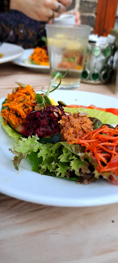 This was always our favourite place for lunch on a Saturday. The menu was always imaginative. However, we returned today after a gap of a year and although the dishes were still original, the Armandines salad consisted of a couple of leaves of lettuce, two slices of cucumber, two slices of tomato liberally sprinkled with raw garlic. Dotted around the plate were several desertspoon sized blobs of couscous type 'salads': one was beetroot, one was grated carrot, one was chickpea, one couscous and pepper, all flavoured with conflicting and overpowering herbs and spices. Even the potatoes I had with my Quiche (which was lovely) were spiced. Too many flavours and too many blobs spoilt what could have been a nice summer...