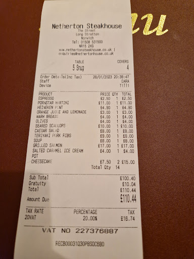 Read moreHi my partner surprise me with taking me out on a school night for a meal to yours last night we had to drive for nearly an hour and when we got there she said it’s a surprise and it’s 20% off so we can afford it during the week we had a nice meal I had steak ribeye she had duck we had a bottle of wine for £28 when she went to pay for the bar for the meal. We were charged full price of £78 it clearly states on your page it is 20% off or is it only if you ask for the 20% off? Otherwise you get charged full price we will be back but you need to put on your page if it is 20% off or it’s not on a Wednesday as you know everyone’s tight for cash now and we wouldn’t have paid and drove all that way for full price on a Wednesday, I expect this price on a Friday or a Saturday many thanks Paul and Debs from East Harling the lady with the purple hair done are bill , Please clarify if we are right or wrong about us not getting the offer and then I could...