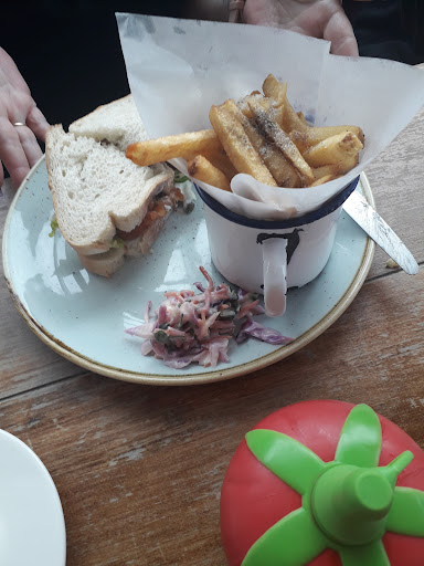 Read moreStaff are fabulous I dont know how they climb up and down those stairs all day delivering food. I dont know why they didnt include a dumb waiter when they built this place! 2 of us had the fish finger sandwiches with lettuce and tartare sauce. It has whole capers in the tartare sauce which makes it quite salty. My sister loved it but I would ask them to hold the tartare sauce next time. The fish fingers are lush. Our best bud had the grilled cheese and ham toastie she loved it. And we all had fries which are gorgeous lovely and crispy and fluffy inside. Drinks were lovely apart from my mates pot of tea she wasnt too keen on their tea bags think you need 2 they are very weak, so she plumped for a cappuccino when she finished that, which she loved, We ordered our puddings 45 minutes later I went to the counter and ordered more drinks and chased up the puds, they arrived 15 mins later my mate had the carrot cake which looked lovely, I know some peeps hate this word but it was nice and MOIST, she said it was so good I had the churros with a chocolate dip it was supposed to have a salted caramel dip but it was just 2 pots of chocolate dip no biggie as they were amazing. My sister had the sticky toffee pudding with vanilla ice cream which is always a hit. I thoroughly recommend their coffee I had a flat white and it was soooo nice and I'm fussy about my coffee. All in all a fabulous time had by all. Oh and Mr Selley you will be pleased to know they cleaned the table...