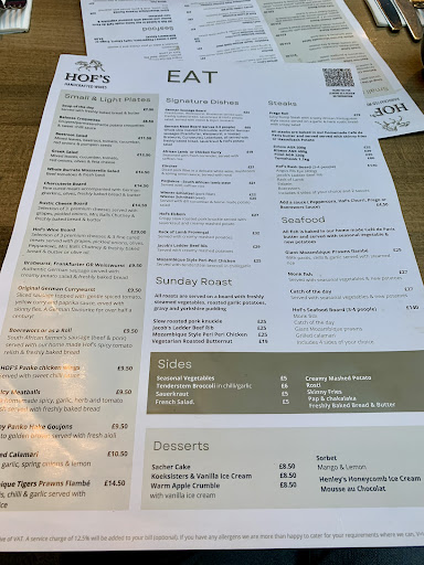 What really lets Hof's down is the poor service. They were friendly enough (just) but from sitting down to getting the bill everything was so sloooow. It took just shy of 2 hours for us to eat a main course and a dessert. They then added a "discretionary" service charge of about 15% to the bill which I'd have paid, if the service had been worth it which is absolutely wasn't. Also, if it's discretionary, how about giving the customer the opportunity to add it while they're paying the bill vs having to ask to have it removed if they don't want to pay it?
