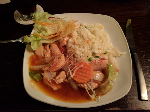 Oh dear. The food was poor quality, the hygiene is obviously poor quality and the customer service was poor quality. This has been a favourite restaurant of ours for some time and we've had regular meals and takeaways. However, we wont be back. We usually have the lunch set menu but thought we'd order from the main menu today. Todays meal started with spicy chicken wings which tasted as if they had been cooked several days ago and reheated. The edges of the wings were hard under the sauce. It tasted like the leftover chicken kept in the fridge for a few days that you might eat at home - but not what you want to pay for in a restaurant. My husbands duck spring rolls looked freshly cooked and tasted nice. Our main meal was curry but instead of the usual melt in the mouth chicken, it was rubbery and chewy. At times it was difficult to swallow as it couldn't be chewed into small enough pieces. Then to top it all I ended up unwrapping a black hair from my teeth which came in the food (my husband is blond and I'm grey so it wasn't ours). A brief apology was given and an offer of more food, but we'd almost finished by this time so said no. When our plates were removed we were asked if everything was ok. I said 'no'. The waiter just took the plates and left with no comment. Then he got surly when we asked for the bill - on which there was no reduction or discount - and we paid and left. What had been a lunch we'd really been looking forward to was a huge...
