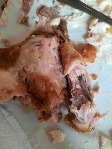 I'll start with the good, sides are amazing garlic mushrooms and chips and cheesy bites were honestly so nice really really enjoyed them however the chicken was pink as I'm heavy pregnant I couldn't eat it ( not that you should eat pink chicken anyway) I had to call twice because the delivery was running abit late (10-15 mins) the person I spoke to on the phone was very polite and apologised for the delay. The chicken looks like a death hazard clearly been reheated or undercooked I honestly don't like giving bad reviews expexially when the sides are great but the chicken was really off putting and could cause food poisoning. For a chicken shop this is highly...