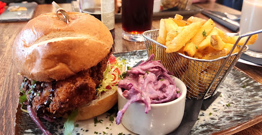The restaurant is attractive, although small and cramped. When we first arrived, we were turned away, because we didn't have a booking. My daughter went online and found that they had lots of spaces an hour later, so she booked a table. The servers didn't seem to be very interested in the customers. I needed gluten free and asked if they had a menu. They replied that 'most things could be gluten-free, but were not specific. I decided to go for an 'Atlantic Prawn/Marie Rose sauce sandwich, with fries, salad, and house slaw. It was all delicious. There was an abundance of food! (It was difficult to eat the salad on the narrow plate.) My son and one daughter decided to go for the Afternoon Tea option at £22 a head. It was very impressive, with plenty of savoury offerings. (The server had promised to come back and explain all of the parts of the meal, but he didn't.) Nobody came to the table to check on us, and when my son paid he was not asked how the meal was. So, food - Great! Delicious and abundant. Venue - clean and attractive, with good toilets Service - sporadic. Would we go back! Yes, because of the quality of the food, but we would be unsure about...