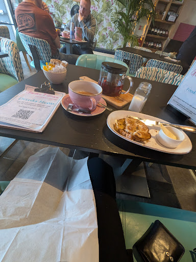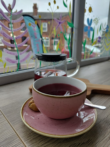 A little gem of a cafe. I'm not a regular to Leyland, this was my first time in the main shopping area. Having walked the high street, I came accross this place, so popped in for a cuppa and some fruit tea loaf (I'd not long had breakfast) beautiful vibe inside, lovely decor, nice music, friendly staff. The place was busy but there were a couple of tables inside (they also have some outside too) While trying to avoid the cake stand, a cheeky Turkish Delight Cheesecake kept shouting my name, caved in and bought a slice to take away (it was delicious, the cake inside was a surprise too) I like that they have a pay if forward board. It's nice to be able to offer someone a treat. I'm back in Leyland next week, I'll bring my husband...