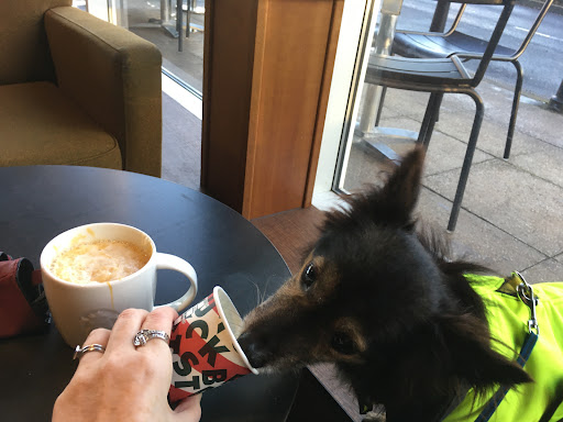 Read moreUpdated! We used the app and pre ordered, great and not long to wait. Tried here again much cleaner, and now you get a choice of almond, oat, or soya dairyfree latte lovely but still nothing gluten-free for treats. It's still busy and not much room at certain times. The doors are not as sensitive, so don't open at every car passing if you get that table! Friendly staff work hard as there's lots of To-go coffee orders too. Could do with seating being reorganised for work areas. Need a 2 storey building! We wanted to chat, which was difficult as the chatter carried, so everyone talked louder! Large dogs came in...