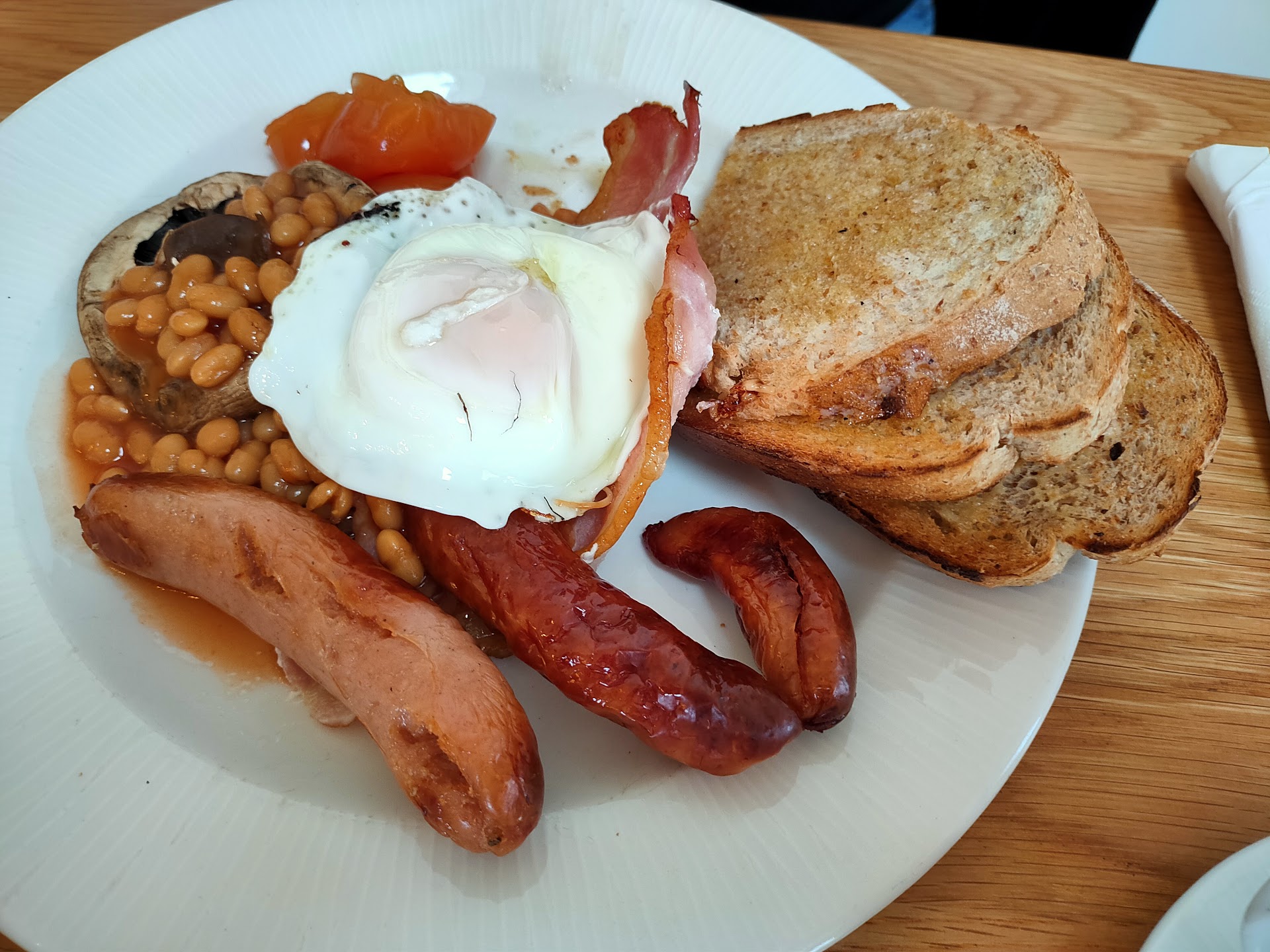 Brendan anderton's local speciality sausage, sweet cured bacon, longton free range egg, bury black pudding, grilled tomato, baked beans, mushrooms & bloomer toast - we will be happy to provide a bespoke breakfast plate for any differences