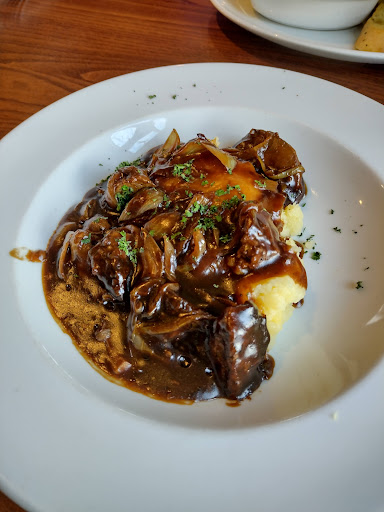 November 2023 update, another big group lunch today, orders sent in before day. After waiting for a latecomer for a good while all meals came out quickly and hot, waitress was friendly and there was no rush for us to eat quickly even though we'd started later than planned. Everyone seemed to enjoy their food, I personally would have had my liver cooked for less time and some pieces were rather hard, but it was tasty with lovely onion gravy and mash. My apple pie and cream was delicious. Unfortunately, the brownie ordered by a friend was very hard, maybe, as the waitress explained because they were gluten free or because it had cooled while waiting for extra custard, or just overcooked, I'm not sure. Overall, a nice lunch out in...