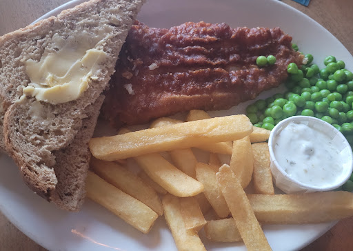 Read moreFood OK...... not really worth what was paid. Much better pub food in and around the area. I ordered Fish & Chips battet had a slight burnt taste but fish itself nice. Frozen chips always a disappointment, garden peas were typical garden peas (which are my fav so no complaints) tartar sauce nice. £1.50 for 1 slice of dry bloomer was shocking, the butter was lovely and salty though and my favourite part of the meal strangely. Mum ordered scampi which she said was OK albeit a tad hard. Hubby had the signature hunters chicken which tbh did not look appetising but he seemed to enjoy and said was OK. Our little boy had nuggets and chips with carrot sticks (carrot sticks dry and not fresh) they also forgot about his dessert and after waiting 50 minutes for meals that were from a freezer and it now been after 7pm we had to leave has the toddler and baby were over tired. Disappointing. Won't try again as always seems to be an issue here it's been around 2 yrs since our last visit and still poor. Shame really cos its a lovely location over looking the dunes and sea and it's nice inside. Nothing fancy but it is clean and tidy. I would however use the pub for a drink due to...