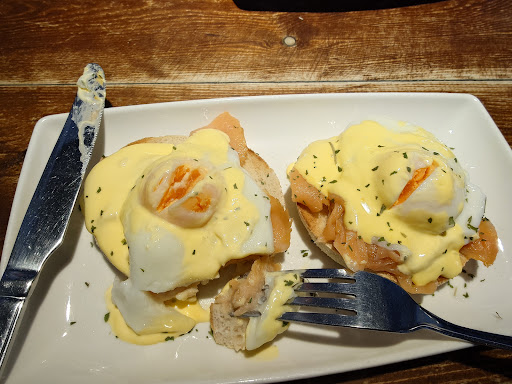 Read moreWhat can one say !!! I was passing through and fancied an egg a bacon sunny .The most expensive Egg N Bacon Toastie I have ever had was £4.40 and delicious . Two Egg and Bacon Toaties and a hopeless Cappuccino came to £14.50.!!! No butter on the thick brown toasts and egg over cooked so it was all very dry and after a half an hour wait coz they got my order wrong felt robbed. I was shocked how busy it was but then again there was no food outlet round there and people have to put up with this place.The coffee although I had asked for a strong and double shot was just milk and no taste of coffee. It really left a bad taste in my mouth and felt robbed.Since I dont live round there did not go back...