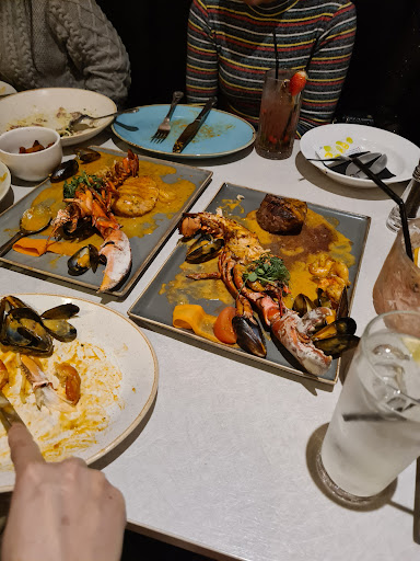 Went for staff night out. 22 of us in total. Gorgeous surroundings but downhill from there. Huge cocktail menu but a lot of them are too sweet indicating an over use of syrup. Drinks are very expensive just under £5 for a corona. With it being a big table food did not come out at once as expected, but staff asked if everything was ok before we had tasted many of the dishes. As the organiser of the meal i got up and asked everyone if everything was ok, at this point 3 of our party pointed out that the 2 surf and turf dishes smelled fishy and did not taste right, and were told by staff that it was their fault for not saying anything when they were asked if everything was ok. They had replied that they had not tried it yet. I took both dishes myself to a member o staff to complain as no-one was interested in coming to the table. I pointed out that these people were chefs and knew when a dish did not smell right and that the dishes smelled fishy, only to be told that they smelled fishy because it was a fish dish. I'm no expert but in my experience seafood should not smell of the sea after being cooked. They refused to change the 2 dishes even the seafood. We didn't want money taken off just the dishes cooked like they are supposed to be. At this point someone came out and presented a video of a live lobster as if to point out that the lobster in the video was the one which was served and it was fresh, I'm sorry but a video of an unrelated lobster proves nothing. In the end the 3 people shared a pizza and left the 2 dishes picture provided of how they were returned. No apology, no replacement and no money taken off. No staff came to our table at all to clear the dishes even though everyone was finished until we requested the bill. We paid the whole bill including £75 for 2 returned dishes, suffice to say we left without a tip and a promise not to return for the most appalling service and...