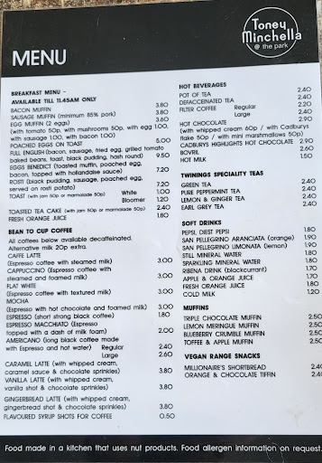 Read moreI go to Minchellas in the park on a regular basis and I have nothing but praise for all the staff there. Denise always meets you with a smile, she is always friendly and welcoming. Ann and Paige always have a smile and are constantly on the go. All the staff are excellent and you can see the younger staff learn from the others as they too are always pleasant. The food is lovely and never disappoints, the eggs are especialy delicious and the chef gets them perfect every time. I have had various meals here and have enjoyed every single one. It is always a pleasure to visit Toney Minchella @ The Park. You should be really proud...