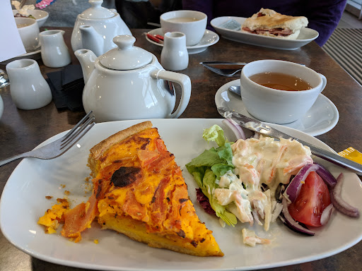Unusual cakes here and very generous sized teapots. Don't be deceived by the unpromising frontage. It doesn't look very fancy yet the food is. My son had a very moist chocolate orange cake with chocolate swirl sauce decor and my daughter couldn't finish her huge portion of Banoffee pie. I could see people ticking into ice cream sundaes at other tables or toasted teacakes. Prices are comfortable and they have a captive clientele as this is the only cafe by rh boating lake. You do not win such a prestigious license to sell though unless your food is very good. Well worth a visit. Send your kids on the steam train or for a pedalo boat ride while you kick back and relax in this...