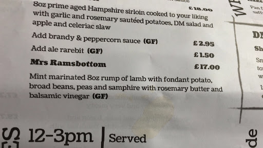 The food was beyond anything I would ever expect to eat in a pub setting. I ordered the soup so start and for a main I decided ok Mrs. Ramsbottom (see photo, yum!). Followed by an apple and rhubarb tart with crumble topping and ice-cream.