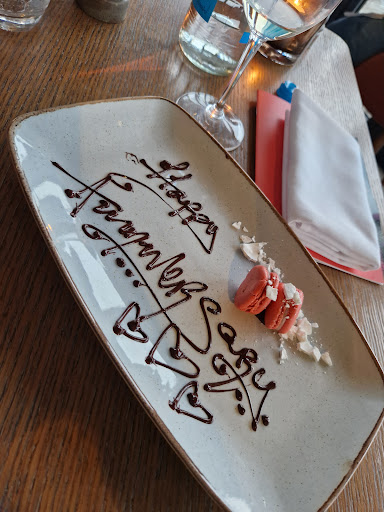 One pleasant surprise during our visit was receiving a beautifully presented plate adorned with chocolate writing that said "happy anniversary."" This kind and thoughtful gesture added a personal touch to our dining experience and demonstrated the restaurant's commitment to customer satisfaction.