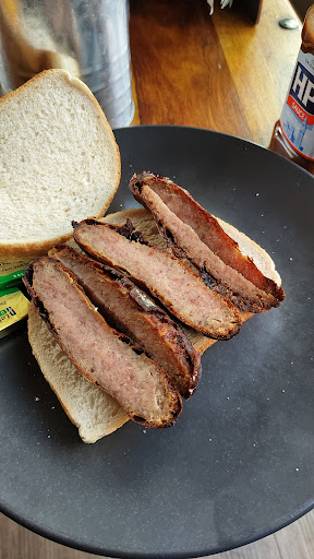 Now from my experience this morning I can on imagine the chef must of run out of passion or was on holiday and someone had been karted in off the street. As the 'local butchers' sausage in my sausage sandwich looked as if the 1st time they where cooked was yesterday. Honestly the casing was as tough as old boots. And the outer layer of sausage meat itself was dry as well. Not to mention the price, the price that made me weep slightly as I ordered it. (This was before knowing it was going to contain yesterday's sausages)