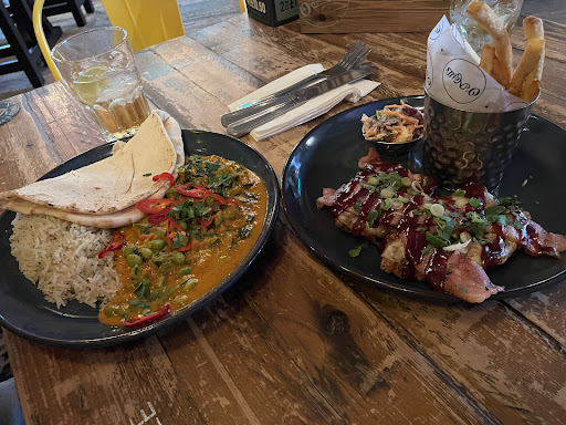 This bar is severely understaffed. It was a very busy Saturday night and there was only one waitress dealing with two parties that had a total of over ,30 people. Food took a long time to be brought out. You had no way of asking questions as the one and only waitress was busy in the kitchen. So for a long you were just left waiting. Ordering drinks was not explained to us when we first and there was no obvious signage to scan the small QR code to o see drinks. There is only 1 ,QR code per table which meant the one person sat closest to it ended up scanning the code for everyone.