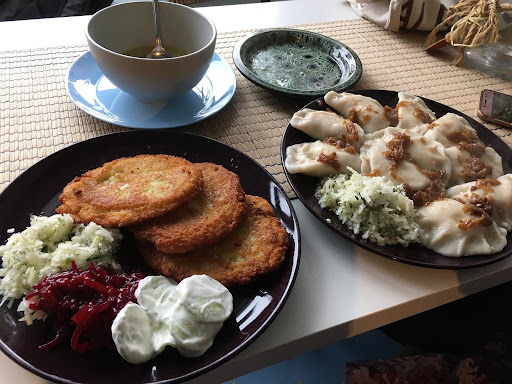 We stopped there on the way home from IOW as we thought that we'd rather eat schabowy and pierogi than McDonald's. We looked at the reviews and thought, let's go there. For starters we found out there was no pierogi because they didn't have time to make them. I thought the place was named after the dish and is famous for thatbut clearly not. I ordered rosół which tasted like water and was white. My friend ordered pomidorowa which looked ok'ish but again lacked any taste My other friend ordered barszcz z uszkami and what a surprise for her it was to find pierogi in it instead of uszka. She got what she came for just not how she wanted it. After looking at the price of schabowy and how burned it was for another customer, we thought we'll pass. The decor and cleanliness of the place was pretty shocking. We ate on a table with a table runner made of what seemed to be a piece of green carpet. There was crumbs all over it. I could point out even more peculiar things in there, but I'll spare you the details. On the bright side, the girl behind the counter was friendly...