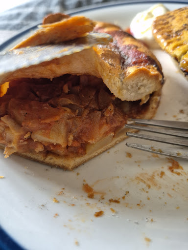 Read moreThe bacon and cheese turnover!!! The sausage bagette thing!!! The lamb pastie!!! And sausage roll!!! Is great when I've just walked yet another mile in freezing cold and rainy climate!!! Thanks for that!!! (Try and be more polite as the two mature women are very busy keeping it warmer!!!) (Only downside is lots of crumb bits can fall into coat if not watching it!!!) (No seating area for a real social gathering just stood outside shop or lucky to get on one of the high...