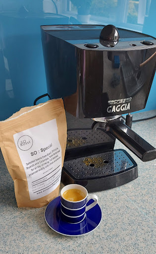 Anyway, the coffee I drank was ground only 2 days previously on the premises and had a superb flavour. So I bought a 240g bag of the fine ground 4-blend for my Espresso machine at home. I'll definitely be back for more.