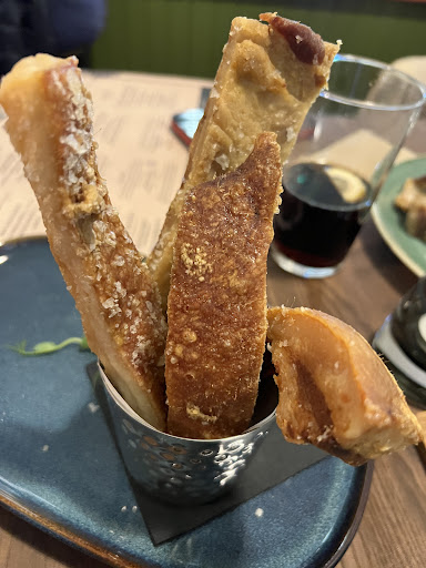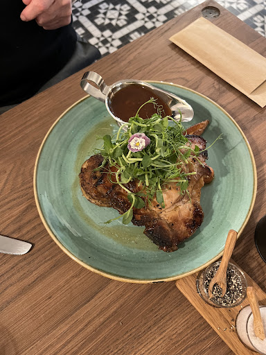 A great new local to be proud of! Friendly and welcoming staff who are well trained and make you feel like a great friend as soon as you walk through the door. Fabulous sympathetic decor to a beautiful old pub including a log burning stove. We dined in the restaurant on a Friday night enjoying live music from this fantastic Rob Plant whilst polishing off one too many bottles of the Romanian Pinot Noir. The pork scratchings are possibly the best i've ever had, the starter special hoi sin scotch eggs were to die for and the pork chop was phenomenal. Great food menu which changes daily. Nice unfussy wine selection and the beers seem to change every few weeks too. The presentation of the pizzas is quite basic but they are fresh and tasty. Something to work on perhaps.