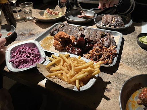 As I say, the food was fine and if you like BBQ food they do a nice enough job, but not good value for £62.95, especially as there was no bacon (literally only just realised this upon re-reading the menu and looking at the photo!). The pickles were a few slices of cucumber and the beet slaw was little more than 3 or 4 mouthfuls... But nice, don't get me wrong. The fries were well seasoned, but remember, this is a main course meal for 2 people to share, at £30+ each.