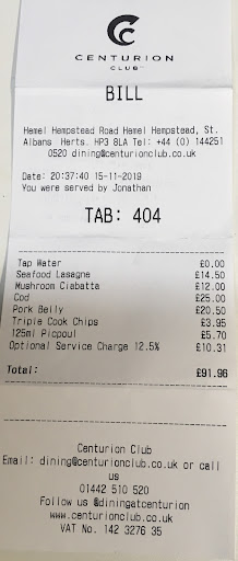 I took my husbands to the Centurion club St Albans for his birthday lunch. We had been saying for while that we must try it so what a great occasion to try it out. On arrival we were taken through to our table. Many people were there for afternoon tea. The place looked very nice.