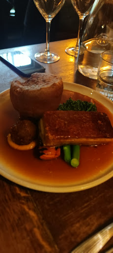 For our mains, we ordered two pork belly roasts, one lamb, and one chicken. The cauliflower cheese was delicious, the vegetables were well-cooked, and the roast potatoes were excellent. One of our party members has a milk allergy, so the cauliflower cheese was substituted with plain boiled cauliflower. However, there was no alternative provided for the Yorkshire pudding. This was a shame as the Yorkshire pudding itself was excellent. The portion sizes for the cauliflower and potatoes were on the smaller side, but everything was flavorful.