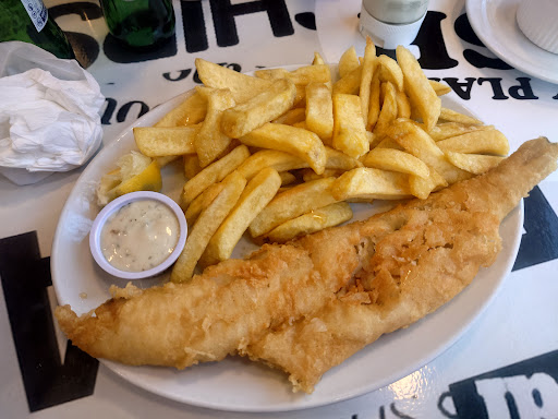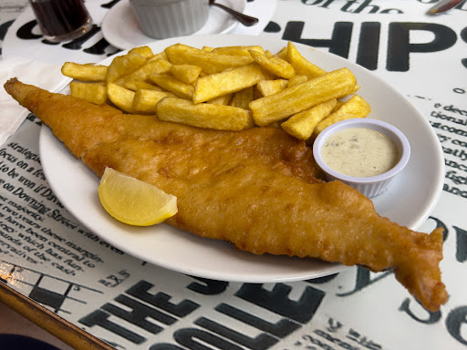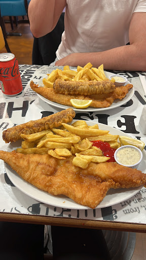 Read moreMet my sister here for lunch as it’s one of the few chippys to have tables and the reviews were really good. Very friendly greeting on a Wednesday lunchtime. Had to wait while sis found the place, so ordered calamari, denied - “it’s finished”. A 330ml London Pride is £6.50 so no. Ordered a sad-looking onion rings instead. Ordered 2 medium cod & chips and mushy peas. When food came we were told that they were large for the same price; great. I honestly think they were trying to do us a favour. Except they were very thin and dry. Batter not bad. Chips a bit oily but OK. Good mushy peas. Worn out Heinz bottle but not Heinz ketchup. Not good. The spell broke and we realised we were probably in a Tourist Trap. We told the friendly server who asked how things were, then just kind of withdrew. Total meal was almost £50 with three soft drinks. Very pleasant staff but not good food. Maybe we came on a bad day? Very...