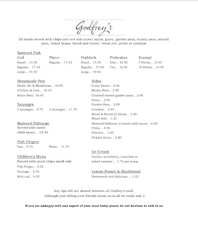 Tragically irregular portion size for a "medium/regular" cod (pic) - disproportionate each time. The children get served this as part of their kids' meals. But, i pay close to £20 for the same piece we have witnessed in the kids plates. Not filling - unless you're an employee and eats at a hefty discount in which case having 3 to 4 of these would have you filled.