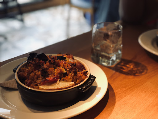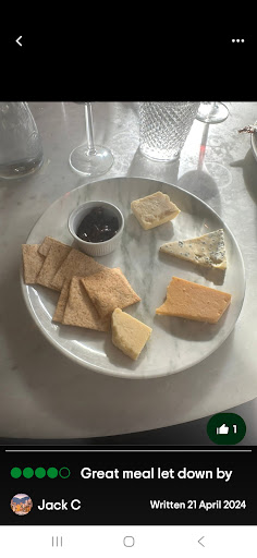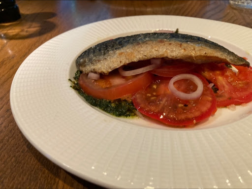 Read moreExcellent food and ambiance with good online allergen menu including gluten free and dairy free options. The mackerel starter was good, maybe not as succulent as I was expecting but a good accompanying pesto & tomato salad and well washed down with a fruity house white. I loved the vegan cauliflower fritters, quite substantial and perfect with the included market veg (fries would’ve been too much for me) though it would be great if this could be made to a gluten free recipe. The pork belly was excellent apparently though the aubergine & ricotta bake was too salty & cheesy for one diner who admittedly is hard to please! The poached pear had a toffee apple taste and went really well with the vegan ice cream. Service was excellent and we were able to move from a less comfortable seat a bit close to the air conditioning and door to a lovely table upstairs with comfy seats. We were too late for the fixed price menu, which looked good value, so paid around £40/head for 3 courses and wine (a service charge of 12.5% was added if I recall) though as a very thin silver lining you can get free parking on London Road (and apparently the car parks) after 6:30pm. Overall an enjoyable evening with high quality cuisine...