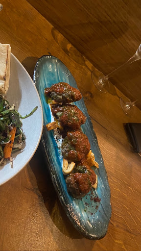 The food was amazing, the service really nice; my friend and I had a lovely evening in this restaurant yesterday. We ordered 2 starters, 2 mains, 2 vegetable sides and it was all amazing. Unfortunately I don't remember half of the names of the dishes😆 we had the fried halloumi with marmalade and harissa on top, as a starter, as well as an aubergine paste which was lovely as well, tuna tartare with pistachio cream and avocado as a main, rice on the side, and a dish with chickpeas and aubergines that my friend, who is a chef, fell in love with. It was a proper experience with different food from a different place.