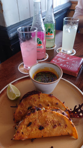 When you see tacos for ÂŁ12 on a menu there's always the fear that you're gonna get two tiny little things and have to order 2 or 3 portions to stave off hunger. No such problem here you get 3 very generous tacos which in the case of the beef shin birria are packed with meat and delicious melted cheese and also fried so very filling. They come with rich beefy consomme to dip them in. Quesadilla also great, a simple dish but one of the best I've had in the UK.