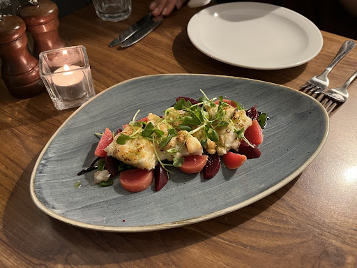 We started with the venison scotch egg, baked goats cheese and bread/olives. Honestly, the scotch egg was somewhat underwhelming. Could've done with more seasoning and maybe better quality eggs? The yolks were pale as anything! The goats cheese and bread more than made up for it though. For mains my sister and I had the fish of the day which was Hake, served with mussels and dauphinoise potatoes - an absolute delight. Sister's other half had the Sirloin which he thoroughly enjoyed. No issues on the mains. For dessert we had the winter Eton mess, Sticky toffee pudding and chocolate fondant. The eton mess and STP were delicious however the Fondant was definitely overcooked and not as r as we would've liked.
