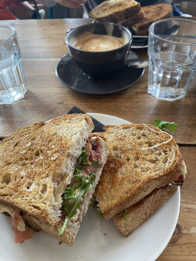 Went in there as another cafe nearby wasnt open, wish i had stayed at home. Full lunch menu only takes up 1 x a5 paper! About 10 foods on menu, appaling cake selection the only thing i ordered from the 'cakes' was a flapjack as there wasnt any actual cakes eg. Victoria sponge, red velvet cake, banana bread, there was only a flapjack, bakewell tart and something else that i cant remember. Good range of cheeses, there was a fairly good range of drinks, except that if you wanted a glass you the waitress told you to go and get a glass from the front of the shop, which obviously weren't dried with a towel as the top one i picked up was wet on inside. But when order came coffees are so strong i could still taste it when i got home, and i dont like coffee light. Would not go again even if nowhere else is open, waste of £20 next time ill just make some toast...
